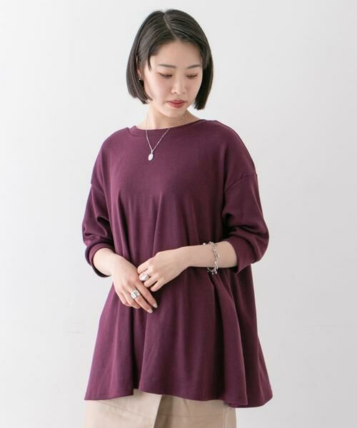 緩やかに広がるAラインシルエットが魅力のサーマルプルオーバー。 大きく開いたバックUネックが、力の抜けたナチュラルな雰囲気を演出します。 トレンドのリブパンツやきれいめなスラックス合わせの着こなしもおすすめ。
