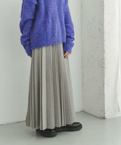 秋~春先にかけて大活躍の、柔らかくスムースな手触りが魅力のフェイクスエード素材で仕立てたロングスカート。レディーライクなプリーツ加工に加え、程よく広がるAラインシルエットがポイント!ウエストの背面部分にゴムを施し、楽な穿き心地&メリハリのあるスタイリングを叶えてくれますよ♪