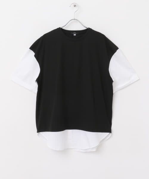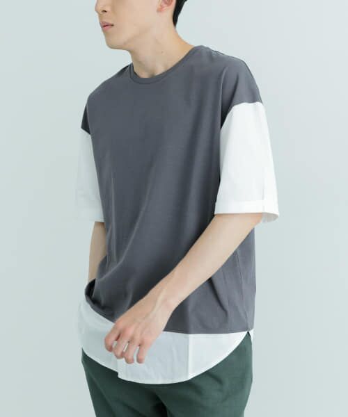 メインボディーにはTシャツ生地を、袖・裾にはシャツ生地を使用したレイヤードデザインが魅力。