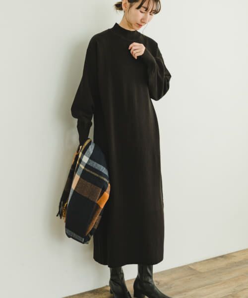 首元に程よくフィットするハイネックデザインが大人っぽさのある印象をプラスしてくれるニットワンピース。すとんと落ちたIラインの美シルエットと、見た目以上に体のラインを拾わずゆったり着用いただけるサイジングがポイント◎1枚での着用はもちろん、ボトムやスカートを合わせたレイヤードスタイルもオススメ♪飽きのこないシンプルなワントーンのルックスと定番デザインが魅力です。
