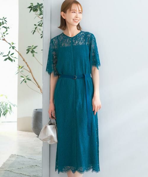 色の濃淡による配色が、大人の女性らしさ漂うレースドレス。Iラインシルエットのため、シャープな印象に仕上がります。付属ベルトでウエストマークすれば、更にメリハリのあるラインを演出。レース素材ですが、はみ出しパイピングにグログランを施すことで少し辛口なディテールを表現しています。結婚式や二次会などのお呼ばれはもちろん、ちょっとしたお食事会まで幅広いシーンに大活躍します。