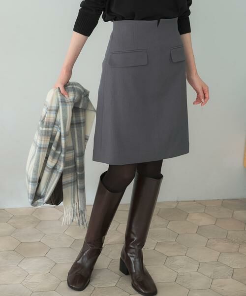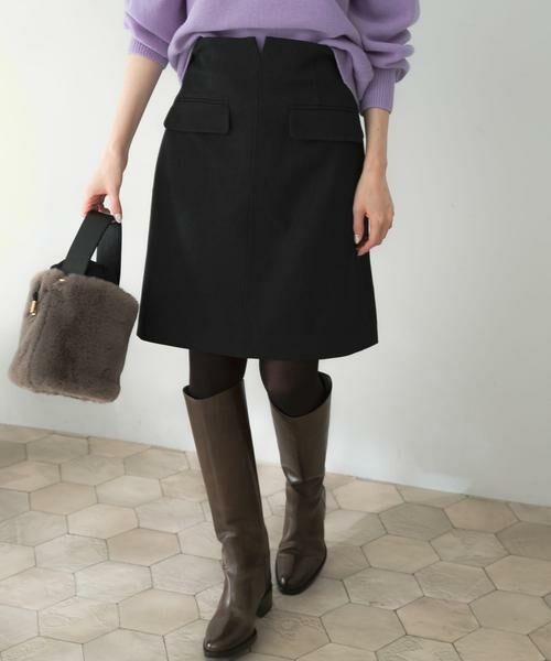 洗練されたシンプルさが大人可愛いミニスカート。ハイウエストの台形シルエットがスタイルアップを叶えてくれる1枚です。フロント部分のポケットデザインが、アクセントをプラス。深めのタックが入っており、脚のラインをすっきりと見せてくれます。足元はロングブーツ合わせで今年らしい着こなしもお勧め◎