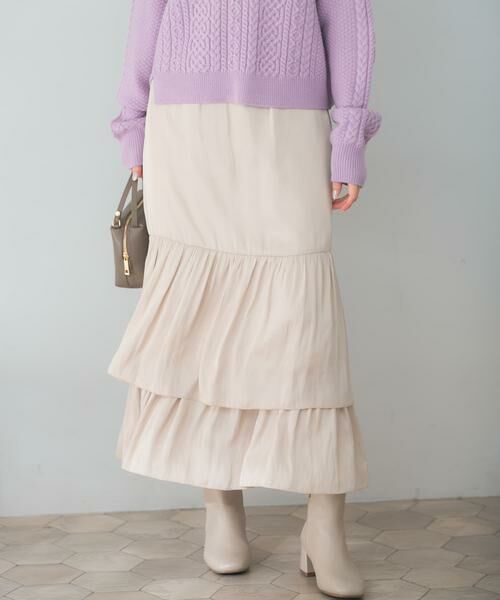 【立体感をプラスする、程よいボリューム感のこなれティアードスカート】