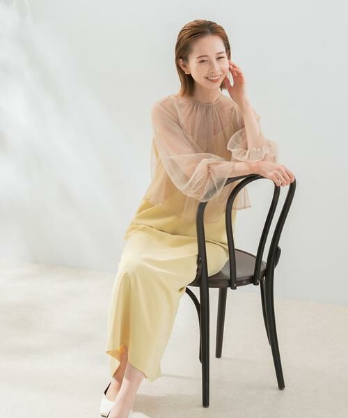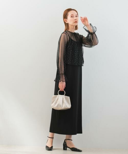 ラインストーンを散りばめたチュールブラウス×キャミドレスがセットとなった、別注アイテムが新登場。トップスはショート丈で設定し、スタイルアップを叶える大人エレガントな仕上がりです。BKにはシルバーのストーンでシックな印象に、yellowはオーロラのストーンで肌なじみの良い華やかな印象に。ブラウスはハイネックトップスとのレイヤードや、ニットなどの袖口からギャザースリーブをチラ見せするインナー使いもお勧め。