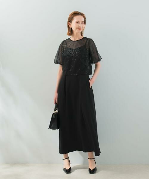 スパンコールブラウスと、キャミワンピースがセットとなった別注ドレス。マットなキャミワンピースに上品なスパンコールブラウスが、より一層存在感を放ちます。ブラウスは、ふんわりとボリュームを持たせた袖コンシャスなデザインに。ワントーンで仕上げた、BK・beigeの2色展開でご用意。