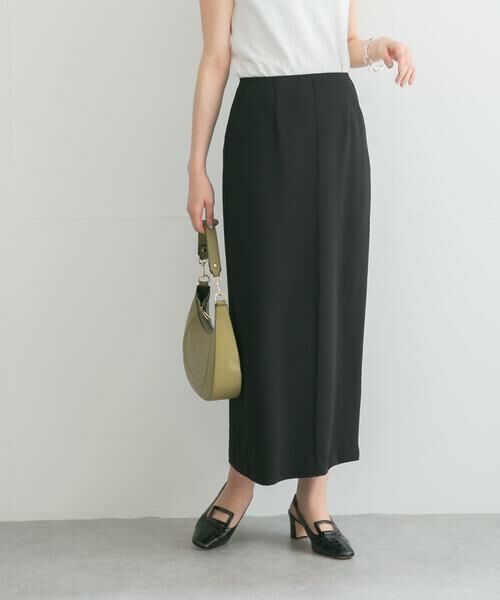 すとんと落ちる、Iラインデザインのペンシルスカート。フロントに縦ラインを施すことで、さらにスタイルアップが叶うロング丈スカートです。ストレッチが効いた素材は、締め付け感がなくリラクシーな着心地を実現。ウエスト部分はすっきりとした印象で、タックインやトップスアウトも様になります。無地デザインで合わせるアイテムを選ばず、ロングシーズン着用頂きたい一着に。