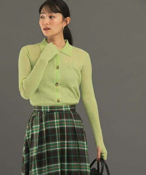 身体のラインに沿いすぎない程よいサイジングが、女性らしい品格を保つポロニット。袖口にはフィンガーホールを施し、トレンドライクな着こなしが完成します。レーヨン混で伸縮性に優れた、薄手なシアーリブ素材を採用。パンツスタイルでカジュアルに着崩したり、ハーフパンツやスカートで大人フェミニンスタイルなど幅広い着こなしが楽しめます。ほんのり優しい色合いのyellowと、モードな雰囲気漂うgrayの2色展開でご用意。