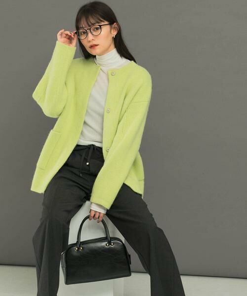 コートを着る前の、肌寒い季節にぴったりなニットジャケットが登場。柔らかい風合いのフォックス糸を使用し、保温性に優れているので1枚あると重宝します。インナーに毛が付く心配を抑えた、裏面のデザインも拘りポイント◎フロントにはパッチポケットを施すことで、カジュアル感をプラスしました。スタイリングに馴染むLIGHT GRAY・MOCHA、目を惹くYELLOWの3色展開でご用意。