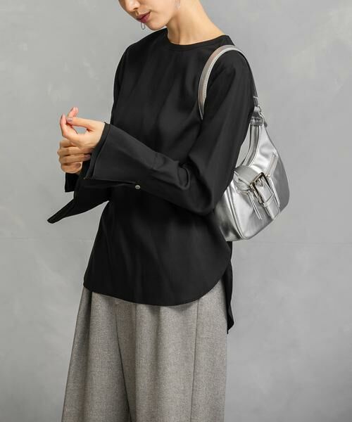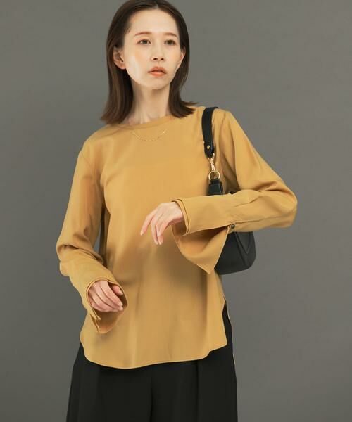 【上品で華やかなダブルカフスデザインブラウス】袖口にかけ少し広がるフレアスリーブがポイントの一着。カフスを二層にしフリルの様な仕立てにすることで、手元を華やか演出します。落ち感があり、程よくラフさのある素材を使用。バックリボンディティールを取り入れ、後ろ姿も抜かりのない印象に仕上げました。前後差のあるヘムラインで、シンプルに1枚でもレイヤードアイテムとしても万能なデザインブラウスに。【2024 Autumn/Winter】【24AW】※商品画像は、光の当たり具合やパソコンなどの閲覧環境により、実際の色味と異なって見える場合がございます。予めご了承ください。※商品の色味の目安は、商品単体の画像をご参照ください。▼お気に入り登録のおすすめ▼お気に入り登録商品は、マイページにて現在の価格情報や在庫状況の確認が可能です。お買い物リストの管理に是非ご利用下さい。