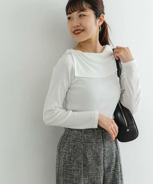 アシンメトリーな襟元が目を惹く、大人フェミニンなプルオーバー。襟ぐりは広く開けたボートネック仕様で、ヘルシーな肌見せを演出します。柔らかな質感のリブ編みで、程よく身体にフィットするサイジングも魅力ポイント◎デイリー使いはもちろん、オフィスカジュアルまで着回し力抜群のアイテムです。サイドには表情のあるシャーリングデザインを施すことで、インもアウトも様になる一品に。