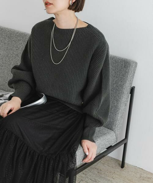 畦編みで立体感のあるこなれた質感に仕上げた一着。一見シンプル見えながらも、サイジングやシルエットにこだわりお作りしました。贅沢なボリュームスリーブはクシュっとさせた時の雰囲気が女性らしく、こなれ感をプラス。ボートネック仕様のため、デコルテラインを綺麗に演出します。程良いバランスの着丈は、幅広いボトムスとスタイリングが可能な一着に。
