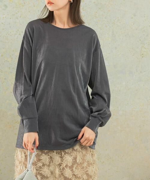 【程よい透け感を楽しめるシアーロングTシャツ】軽やかな素材感でデイリー使いしやすいロングTシャツ。スパークナイロンによる、表面のキラッとした光沢感が特徴の素材を採用しました。袖口にはタックを施し、ボリュームを持たせた女性らしさも拘りポイント◎ワッシャー加工×綿の優しいタッチで、着心地も抜群です。ジャケットのインナーはもちろん、ニットやスウェット等のレイヤードアイテムとしても活躍する一品に。【2024 Autumn/Winter】【24AW】※商品画像は、光の当たり具合やパソコンなどの閲覧環境により、実際の色味と異なって見える場合がございます。予めご了承ください。※商品の色味の目安は、商品単体の画像をご参照ください。▼お気に入り登録のおすすめ▼お気に入り登録商品は、マイページにて現在の価格情報や在庫状況の確認が可能です。 お買い物リストの管理に是非ご利用下さい。