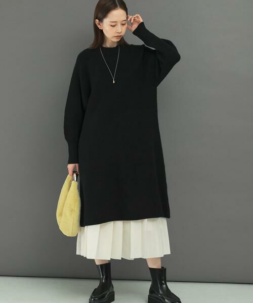 シンプルながらも1枚で着映える、ウォーム感のあるニットワンピース。トレンドライクなミニ丈×詰まり過ぎない衿ぐりを採用し、女っぽさをプラスしました。畦のざっくりとした編み地が可愛く、保温性の高いウール素材も魅力的◎程よく厚みを持たせることで、身体のラインを拾いにくい点も嬉しいポイントです。ロングブーツとの着こなしや、チェックストール・ファーバッグを合わせるなど幅広いスタイリングをお楽しみ頂きたい一着です。