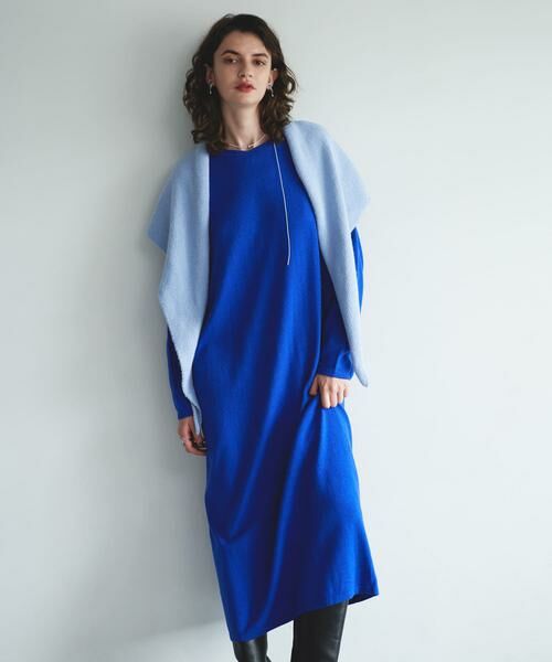ゆったりとした余韻のあるサイジングで、1枚で様になるニットワンピース。前後2WAYでの着用が可能で、ラウンドネックとVネックの2通りの着こなしを楽しめます。滑らかで柔らかな肌触りの、着心地の良いカシミヤ混素材を採用。お袖のドロップショルダーが程よい抜け感を演出します。絶妙なロング丈なのでブーツにも合わせやすく、スタイリングに悩んだ日に重宝すること間違いなしの一着に。