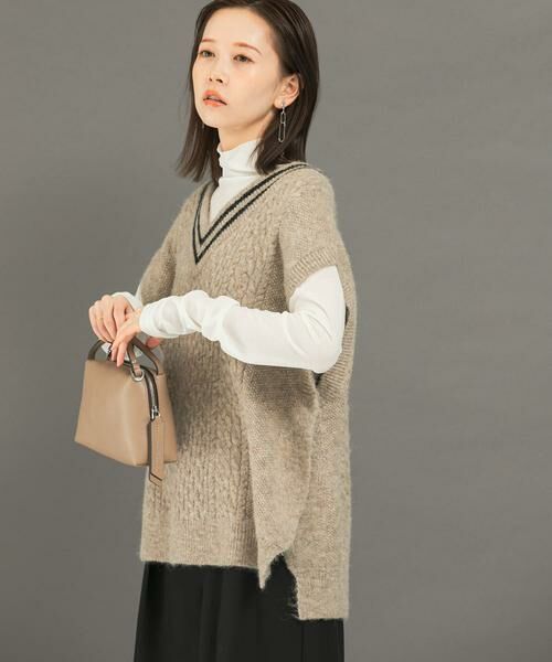 【トラッドな印象漂う、アームウォーマー付きニットベスト】