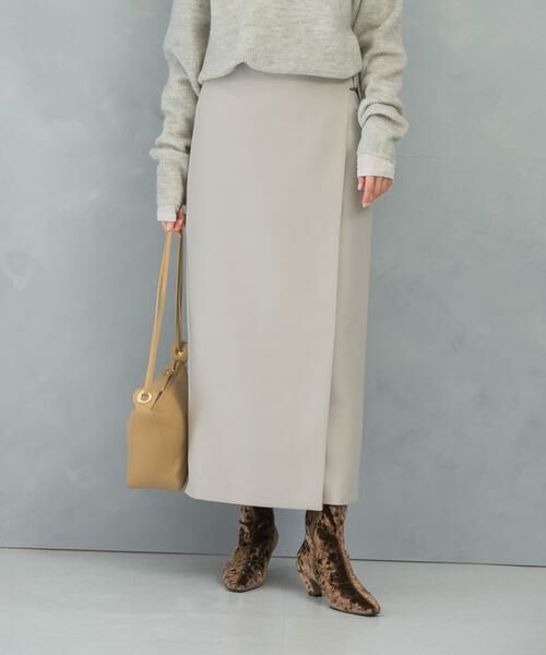 ラップデザインがポイントのロングスカートが登場。体のラインを拾いすぎない、程よい厚みのある素材を採用しました。スタイルアップにも効果的な、すっきりとした腰回りも拘りポイント。足さばきもよく、ウエストベルトがこなれ感を演出します。シンプルなトップスを合わせても、スタイリングが決まる優秀アイテムに。
