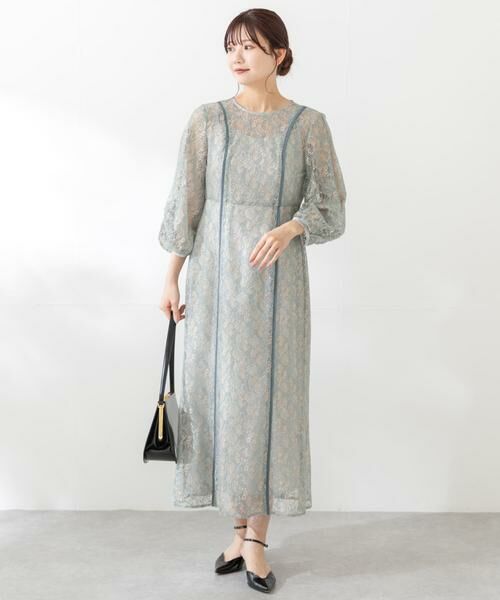 全身レースを使用した存在感のある華やぎワンピース。エプロンデザイン×袖ギャザー仕様が、より柔らかく女性らしい雰囲気に仕上げました。レースの華やかさと落ち着いた色味が、結婚式などのお呼ばれにはもちろん、特別な日におすすめです。