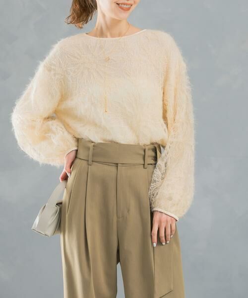 繊細な毛足感が特徴のシャギーブラウスが登場。チュールレース地にフラワーモチーフの素材が新鮮な印象です。ボリューム感のあるお袖やコンパクトな着丈もこだわりポイント◎シーズンライクで活躍し、デイリーのみならずお呼ばれやちょっとしたお食事にも活躍します。同素材のフラワーチュールシャギースカート(品番:RA47-25S703)との、セットアップコーデもお勧め。