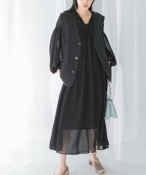 カフタン風のボリューム感が大人可愛い、華やかなティアードワンピースが新登場。シアー楊柳にゴールドのカットジャガードを施し、デザイン性のある素材で仕上げました。フロントにリボンを付けた深Vネック仕様で、2WAYでお楽しみ頂ける点も魅力ポイント。袖口はシャーリングゴム仕様のため、お袖をたくし上げてボリュームを出した着こなしも様になります。大人の甘さと品のよさを纏うBLUE・BLACKの2色展開でご用意。