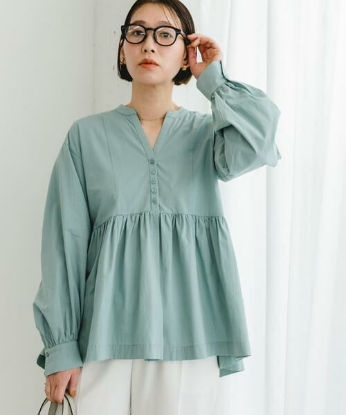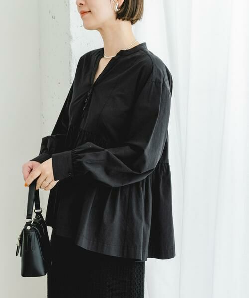 【動きのあるシルエットが爽やかな印象の、ティアードギャザーブラウス】