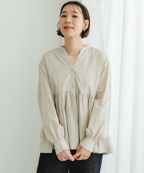 くしゅっと寄せたギャザー切り替えが着映えを叶える、涼し気なブラウスが登場。ナチュラルなコットン素材を使用し、柔らかな風合いと快適な着心地を実現します。ふわっと広がるティアードシルエットで、気になるお腹や腰回りをさり気なくカバー◎高め位置の切り替え×フロントのVネック仕様が、上半身に目線を集めスタイルアップ効果を叶えます。ベーシックなBLACK・L/GREIGEに加え、新鮮な雰囲気のMINTとの3色展開でご用意。