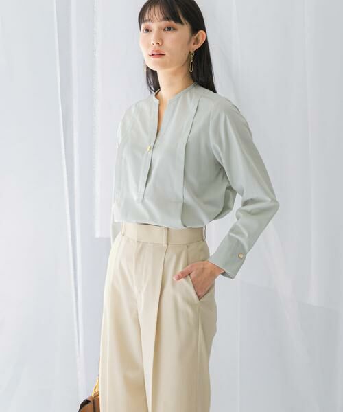 【ゴールドの釦使いが上品をプラスする、ウォッシャブルシャツブラウス】きらっと光るゴールド釦が効いたシャツブラウスが登場。綿タッチでハリ感のある生地ですが、シワになりにくくウォッシャブル機能が備わった嬉しい一着です◎首元はスキッパー仕様のため、お顔周りをすっきりと綺麗な印象に。やや前後差のある着丈や、タック使いで動きを付け女性らしさをプラスしました。デイリーからオフィスシーンまで幅広く着用可能な、万能ブラウスに。【2025 Spring/Summer】【25SS】※商品画像は、光の当たり具合やパソコンなどの閲覧環境により、実際の色味と異なって見える場合がございます。予めご了承ください。※商品の色味の目安は、商品単体の画像をご参照ください。▼お気に入り登録のおすすめ▼お気に入り登録商品は、マイページにて現在の価格情報や在庫状況の確認が可能です。 お買い物リストの管理に是非ご利用下さい。