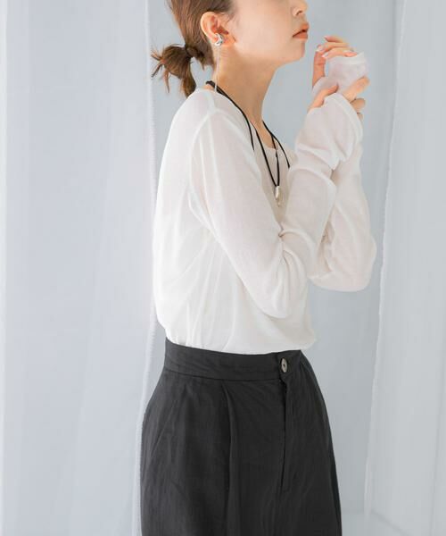 ナチュラルなシアー感が、上品カジュアルに演出するカットソー。細番手のコットン×ナイロンの生地感は、なめらかな肌触りで着心地抜群です。サムホールを施し、袖丈を少し長くすることでトレンドライクな手元に。ジレやジャケットインはもちろん、キャミワンピースとのレイヤードスタイルもお勧めです。定番のoff・dark navyに加え、春らしい新鮮なcream・redの4色展開でご用意。