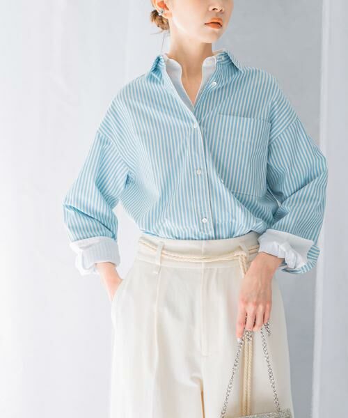 程よいオーバーサイズが今季らしい、レギュラーカラーシャツが登場。腰周りが隠れ裾のヘムラインなど、シンプルながらこだわりの詰まったデザインに仕上げました。カフスのボタンを開けて、お袖スリット仕様としても着用可能◎トップスとしてはもちろん、羽織りとしても重宝する1枚です。少し衿を抜いて、タンクトップやデコルテが空いた女性らしいインナーとの抜け感スタイルがお勧め。