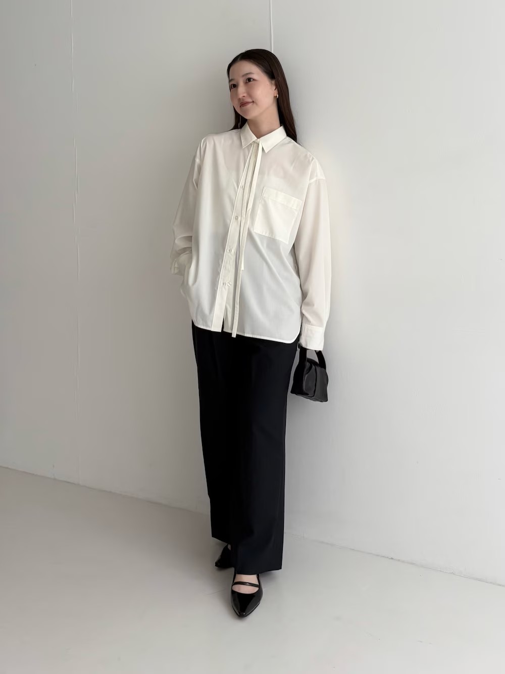 3WAYでアレンジ可能ができ、様々な着こなしができるデザインシャツが登場! リボンを外せばベーシックなシャツとしても着用して頂けます◎ 防シワ機能付きなのが嬉しいパンツは、どんなアイテムにも合わせやすいシルエットで着回し力◎です。
