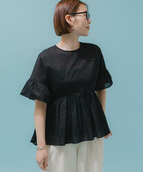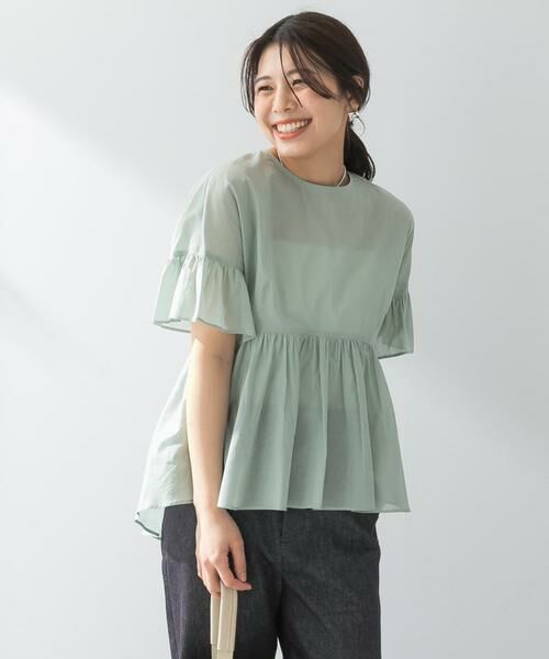 柔らかいコットンボイルを100%使用し、さらりとした肌触りのギャザーブラウス。程良い透け感で、清涼感のある夏にぴったりのアイテムです。たっぷりとギャザーを寄せた切り替えデザインは、メリハリのあるスタイリングを叶えます。前後差のある丈感は、ヒップラインをカバーする効果も◎シンプルなスタイリングでも、一枚で着映えする優秀アイテムです。
