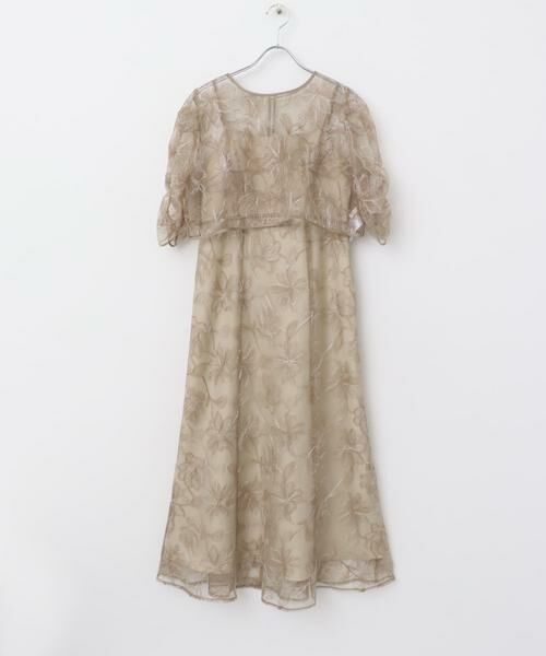 上品な刺繍レースを使用したレイヤードドレス。キャミワンピースとブラウスの、華やかさのあるセットアイテムです。総レースの軽やかな生地感で、裾のほんのりとしたフレアシルエットが大人ドレッシーな印象を演出。結婚式や二次会などのお呼ばれはもちろん、ちょっとしたお食事シーンにも活躍する一着です。