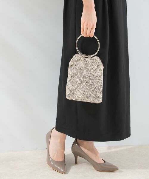 大きなリングハンドルがワンポイントの、ビジューバッグが登場。ビジューとビーズを散りばめたデザインは、コーディネートのアクセントに。ハンドバッグとして持つと、ゴールド金具が手元を上品な印象に仕上げます。付属のチェーンで、ショルダーバッグとしても使える2WAY仕様が嬉しいポイント◎コンパクトながらも、スマホやハンカチなどの必需品が入るサイズ感です。結婚式やお食事などの、フォーマルシーンに活躍します。