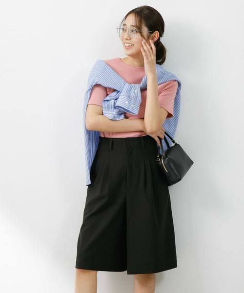 程よく広がりのあるシルエット×安心の膝丈のパンツは、脚見せが苦手な方にも是非挑戦して頂きたいアイテム。いつものボトムをハーフパンツにするだけで、一気にオシャレ感アップ間違いなし◎ツータックデザインにすることで、気になる太もも周りもラインを拾わずキレイに仕上げてくれます。ベーシックなBEIGE,MOCHA,BLACKの3色でご用意しました。