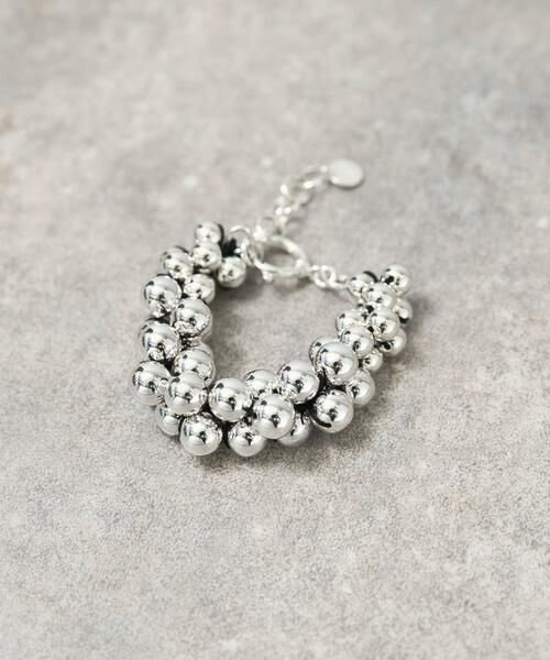 沢山のボールを1粒1粒かぎ針で編み込んだ、手間と時間をかけて制作したハンドメイドのブレスレット。ボールは樹脂製なのでボリュームがありながら軽いつけ心地になります。