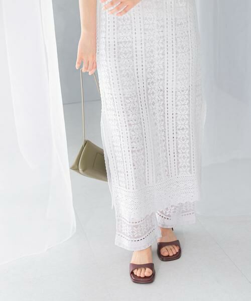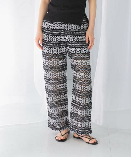 繊細に編み立てたボーダーレースの華やかなパンツ。甘さをセーブした上品なルックスで、ON/OFFで着回しに活躍するアイテムです。