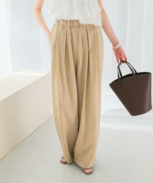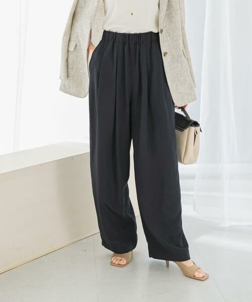 動くたびに上品な揺れ感を演出する、レーヨン素材のイージーパンツ。ウエストはゴム仕様で快適な履き心地です。フロントにはギャザーを施し、立体感のあるシルエットを実現。シンプルながらもとろみのあるシルエットが抜け感をプラスし、デイリー使いに重宝すること間違いなしの一本です。