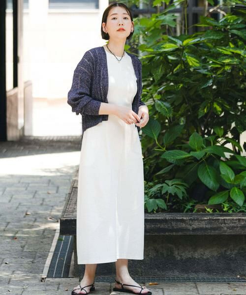 UVカット×接触冷感と、夏に嬉しい機能性を持ち合わせたワンピース。コクーンシルエットでふんわりと広がり、旬なバランス感で大人エレガントな印象へ導きます。フロントと差を付けた、女性らしいバックスタイルも魅力的。アメリカンスリーブで肩回りをすっきりと見せつつ、程よい肉感でリラクシーさを重視したディテールに。単品はもちろん、カーディガンやジャケットを羽織ったスタイリングもお勧め。