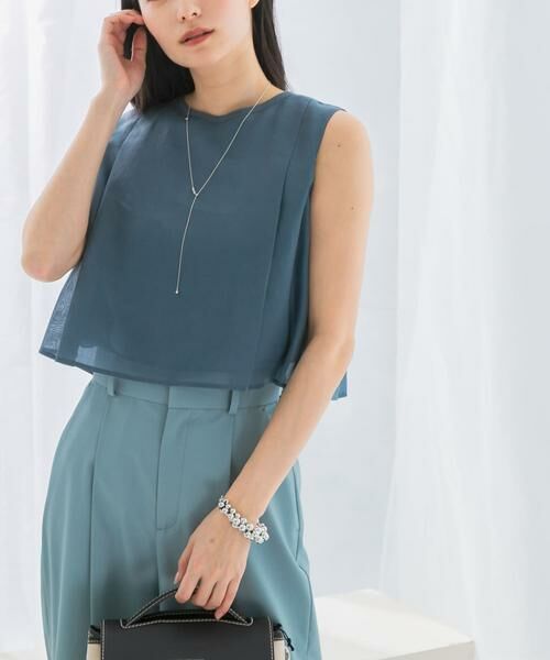ブラウスにシアー素材がドッキングされた、レイヤードスタイルが一枚で完結するアイテム。シアー部分は、オーガンジーにチンツ加工を施した旬な素材を採用。上品な透け感が女性らしい印象を演出します。別地には透けにくいジョーゼット素材を使用し、シアーアイテムでもインナーを気にせず着用可能に◎タックインすれば、クロップド風トップスとして今季らしいスタイリングが叶います。