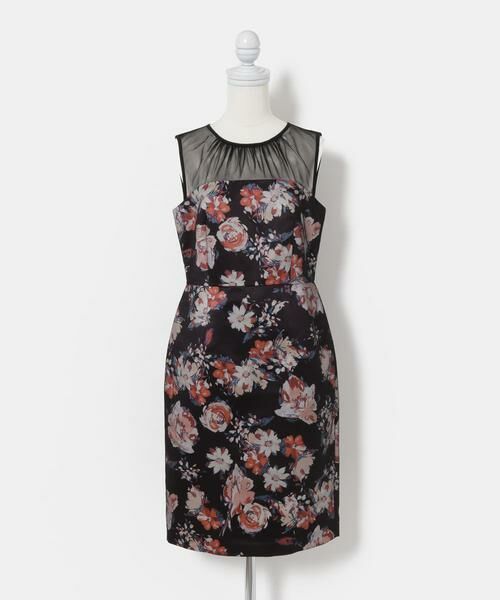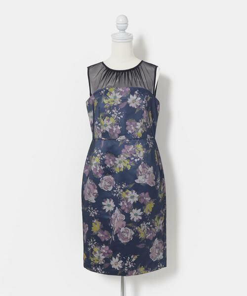 フラワープリントとチュールの切替が魅力的なドレスはとても華やかな印象に。身頃部分はとてもスッキリとしており、綺麗なボディラインを演出してくれます。大人な配色の花柄ワンピースは、パーティーシーンで注目される事間違い無しの一着です。