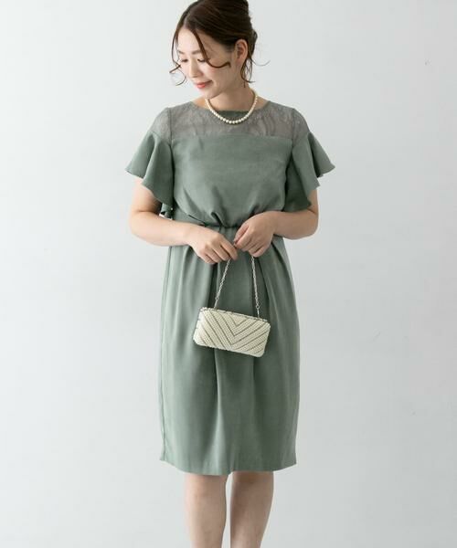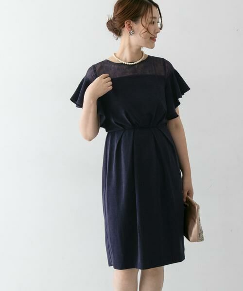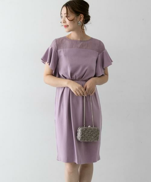 レースの下にはシフォン生地を重ねて、大人の上品な透け感を演出しております。袖のフリルが軽やかに揺れるのが美しいデザインです。優しいスモーキーなカラー展開で、女性らしい落ち着いた印象で着こなして頂けます。