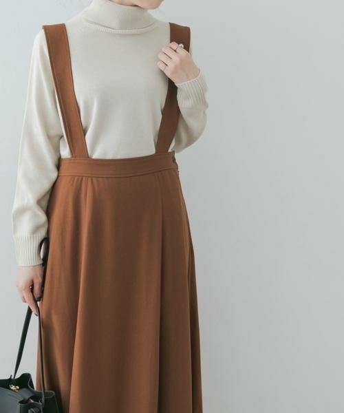 【揺れるフレアシルエットがフェミニンなサスペンダースカート】
