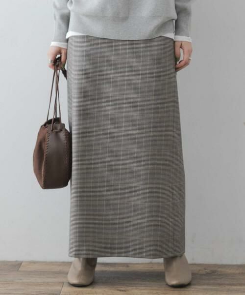 千鳥×チェックの馴染みの良い柄で、ほっこり感が出すぎない、大人も着やすいチェックにこだわりました。すっきりとした台形シルエットと後ろゴムのウエストがラクとキレイを叶えます。