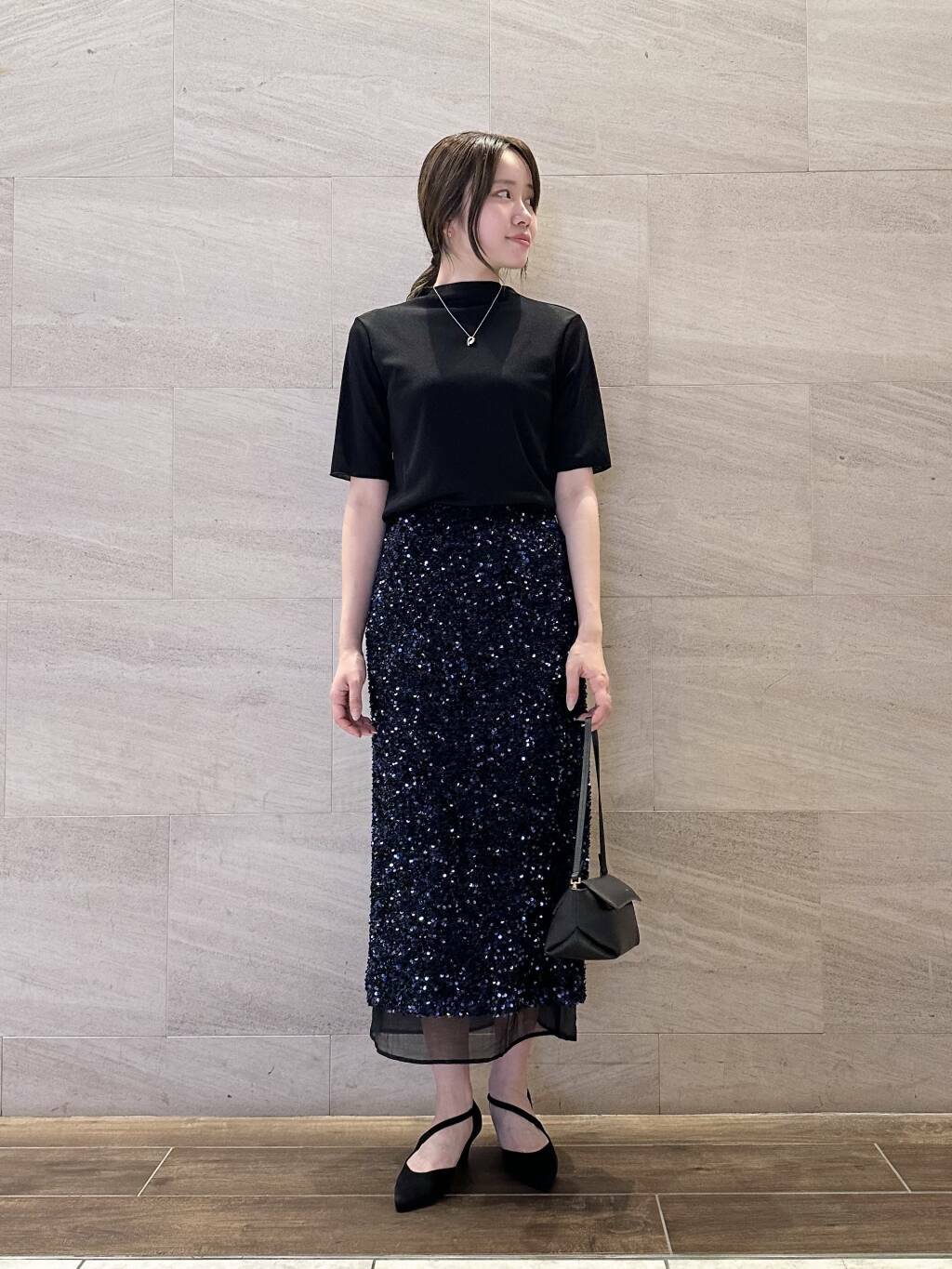 程良いラメ感がさりげなく華やかな印象! 肌触りはラメのシャリっとした感じはややありますが、伸縮性があるのでそこまで密着感がなく気になりませんでした◯ オケージョンスタイルにぴったりなスカート◎ 裾がシアーのレイヤードデザインになっており高身長でもきれいな丈で着れました◎