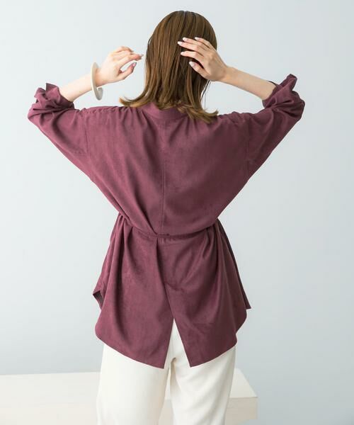 柔らかなピーチタッチ素材が肌に心地よく、さりげなく上質感を纏えるデザインシャツ。付属の紐でウエストマークすれば、女性らしいメリハリのあるシルエットが完成します。一枚ではもちろん、軽く羽織るように着てもバックスリットが程よい抜け感を演出。季節の変わり目にも重宝する一枚です。クリーンな印象を引き立てるWHITEと、こっくりと深みのあるCH/LACQUERの2色展開でご用意しました。