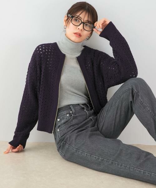軽やかなメッシュ編みが魅力の、ジップアップニットカーディガン。程よい透け感が、上品な抜け感を演出します。フロントのダブルジップデザインが着こなしのアクセントになり、ジップを上まで閉めてプルオーバーのように着たり、軽く羽織ったりと、様々なスタイリングが可能◎コンパクトな丈感なので、スカートにもパンツにも合わせやすく、スタイルアップ効果も期待できます。これからの季節は、Tシャツやタンクトップの上に羽織って軽やかに。秋が深まれば、シャツや薄手のニットとのレイヤードもおすすめです。カジュアルなデニムスタイルから、きれいめなスカートスタイルまで、幅広いコーディネートに活躍する一枚です。