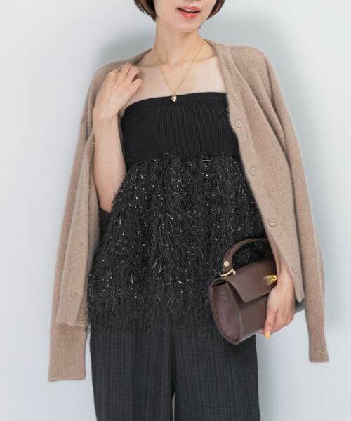【フェザーフリンジが主役級の華やぎをプラスする、大人のニットビスチェ】