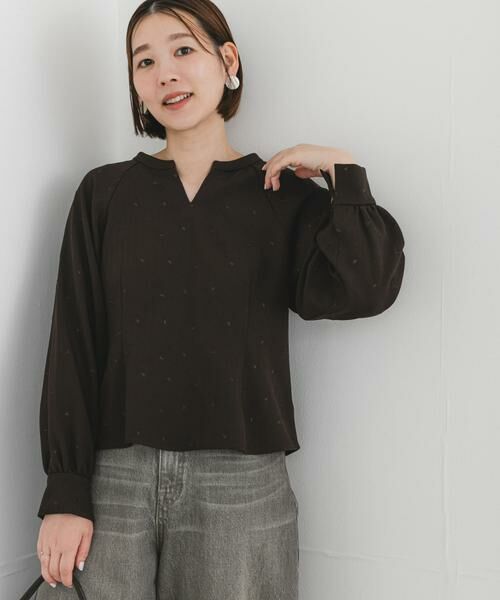 ハート柄の刺繍が施されたブラウス。 短め丈に品の良いダークブラウンのおかげで 甘くなりすぎず大人可愛く使っていただけます。 前後2WAYですがボタン前にして着るのがわたしは好き。 肌寒い日にはタートル合わせがおすすめです。