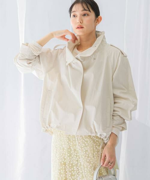 ボタンを上まで留めればスタンドネックも楽しめる、撥水機能付きのショートブルゾンが登場。軽量かつ耐久性の高いナイロン素材を採用しました。裾のドローコードで、丈調整やシルエット変化も可能◎ジャケット感覚で、気軽に羽織って頂けるサイズ感で仕上げています。 定番のivory・darknavyの2色展開で、裏地はなく季節初めから着やすい一品に。