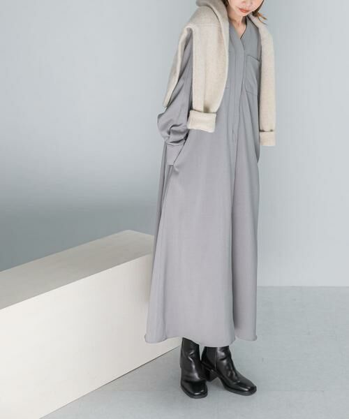 【きちんと感とカジュアルさを両立するVネックワンピース】