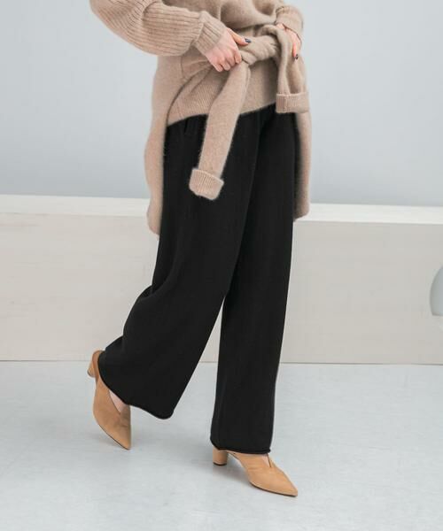 トレンド感たっぷりのメリノウールニットパンツ。繊維の細いメリノウールを使用しているので、素肌に触れてもチクチクせず快適な着心地です。ニット特有の膝の抜け感を防ぎ、きれいなシルエットをキープできる仕上がり。滑らかな落ち感でワイドシルエットに編み上げているので、身体のラインを拾わず重たくならないのもポイント。華奢なアクセサリーやベルト、女性らしいブーツなどの小物と合わせると、ワンランク上のリラックスコーデが完成します。